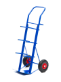 Установленные на тележке баллоны можно не снимать, при этом компактность приспособления не вызовет проблем при хранении. Конструкция также обеспечивает дополнительную устойчивость и защиту от падения при условии фиксации емкости цепью, ремнями или замками.