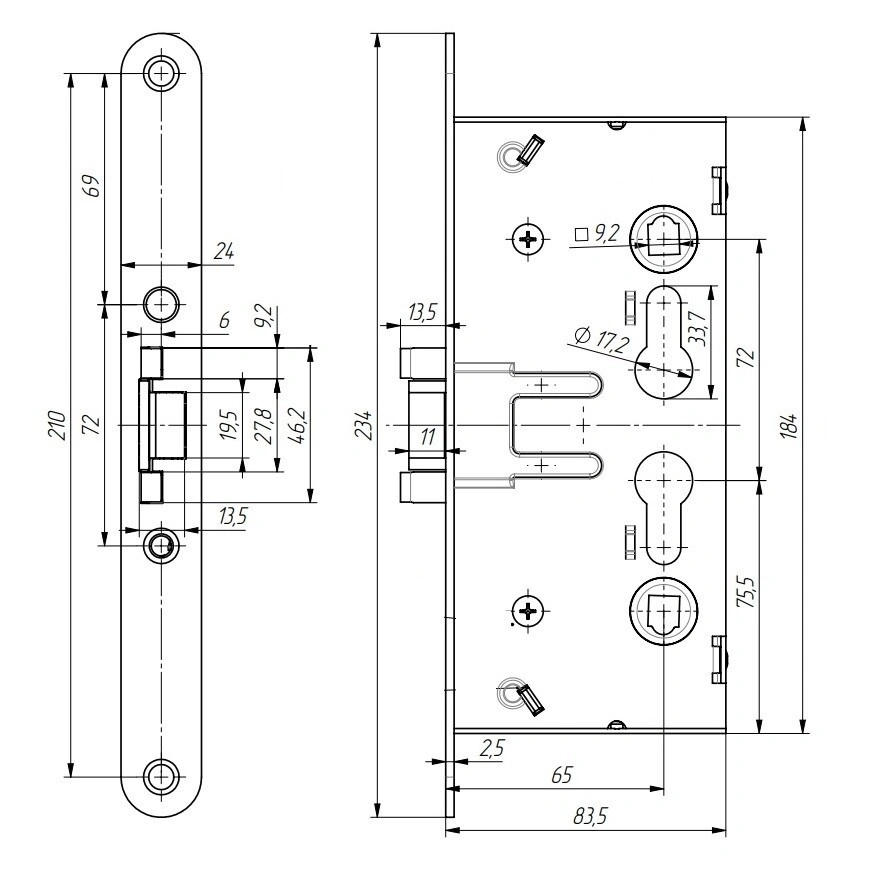 Корпус, засов, защелка - сталь