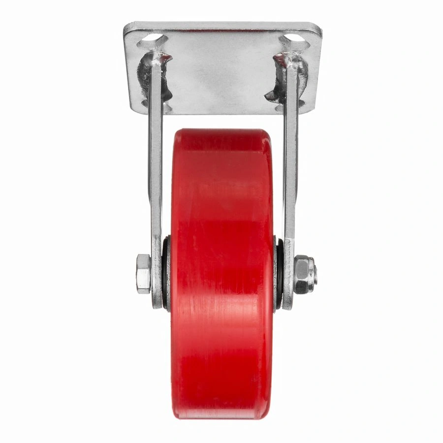 Колесо 1041-152, диаметр 152мм., чугун/полиуретан, неповоротное, игольчатый подшипник. Грузоподъемность 360кг. Колесо полиуретановое, центр из литого чугуна. В оси колеса-игольчатый подшипник. Стойкий к боковым ударам неповоротный кронштейн. Наличие масленки позволяет периодически обслуживать подшипник оси колеса. Крепление площадка под 4 болта. Колеса полиуретановые с чугунным сердечником широко применяются на бетонных полах преимущественно внутри помещений. Широко используются на тележках, строительных лесах и другом оборудовании, где требуется высокая грузоподъемность. При длительном нахождении под большой нагрузкой не деформируются. Возможно использование вне помещении на твердых покрытиях. Температура эксплуатации от -20 до +50С.