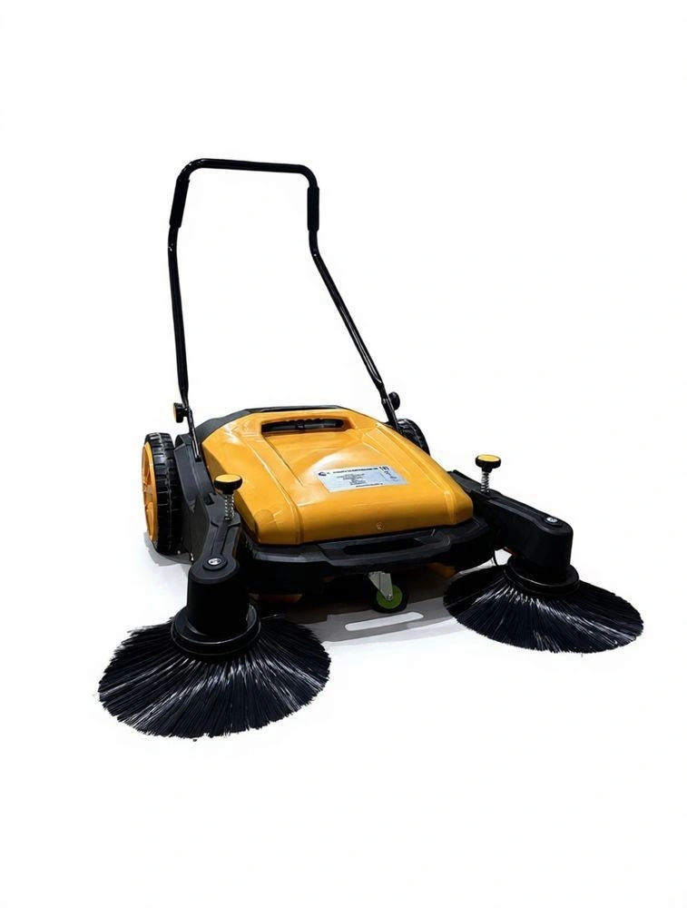 TOR GM98 - надежная и производительная подметальная машина с механическим приводом, созданная для эффективной уборки больших площадей как внутри, так и снаружи помещений. Неприхотлива в обслуживании, проста в управлении и не требует электропитания - идеальна для заводов, складов, торговых центров, ферм и других объектов с интенсивным загрязнением. Ширина уборки 105 см, производительность до 3680 м²/час, вместительный контейнер на 55 литров и регулируемая скорость основной щетки обеспечивают высокую эффективность при минимальных усилиях оператора. Где используется? Подходит для уборки производственных цехов, складских помещений, торговых залов, ангаров, гаражей, ферм, парковок, дворовых территорий и других объектов с твердым покрытием. Эффективна как в закрытых помещениях, так и на открытых площадках - обеспечивает чистоту без использования электроэнергии или топлива. Основные преимущества: Высокая производительность - до 3680м²/час благодаря ширине уборки 105см и мощной трехщеточной системе. Три щетки - две боковые убирают мусор вдоль стен и бордюров, основная щетка длиной 48 см собирает отходы в контейнер. Регулируемая скорость основной щетки - позволяет адаптировать работу под тип поверхности и уровень загрязнения. Вместительный контейнер - объем 55 литров снижает частоту опустошения при уборке больших площадей. Эргономичная рукоять - регулируется по высоте и углу наклона, складывается для удобного хранения и транспортировки. Удобство перемещения - складная конструкция и дополнительная ручка на корпусе позволяют легко перевозить машину в багажнике или на тележке. Надежность и долговечность - механический привод не требует технического обслуживания, устойчив к перегрузкам и работает в любых погодных условиях. Комплектующие (при необходимости замены): - Боковая щетка для подметальных машин G98/G100 - артикул 1051224 - Основная щетка для подметальных машин G98/G100 - артикул 1051224