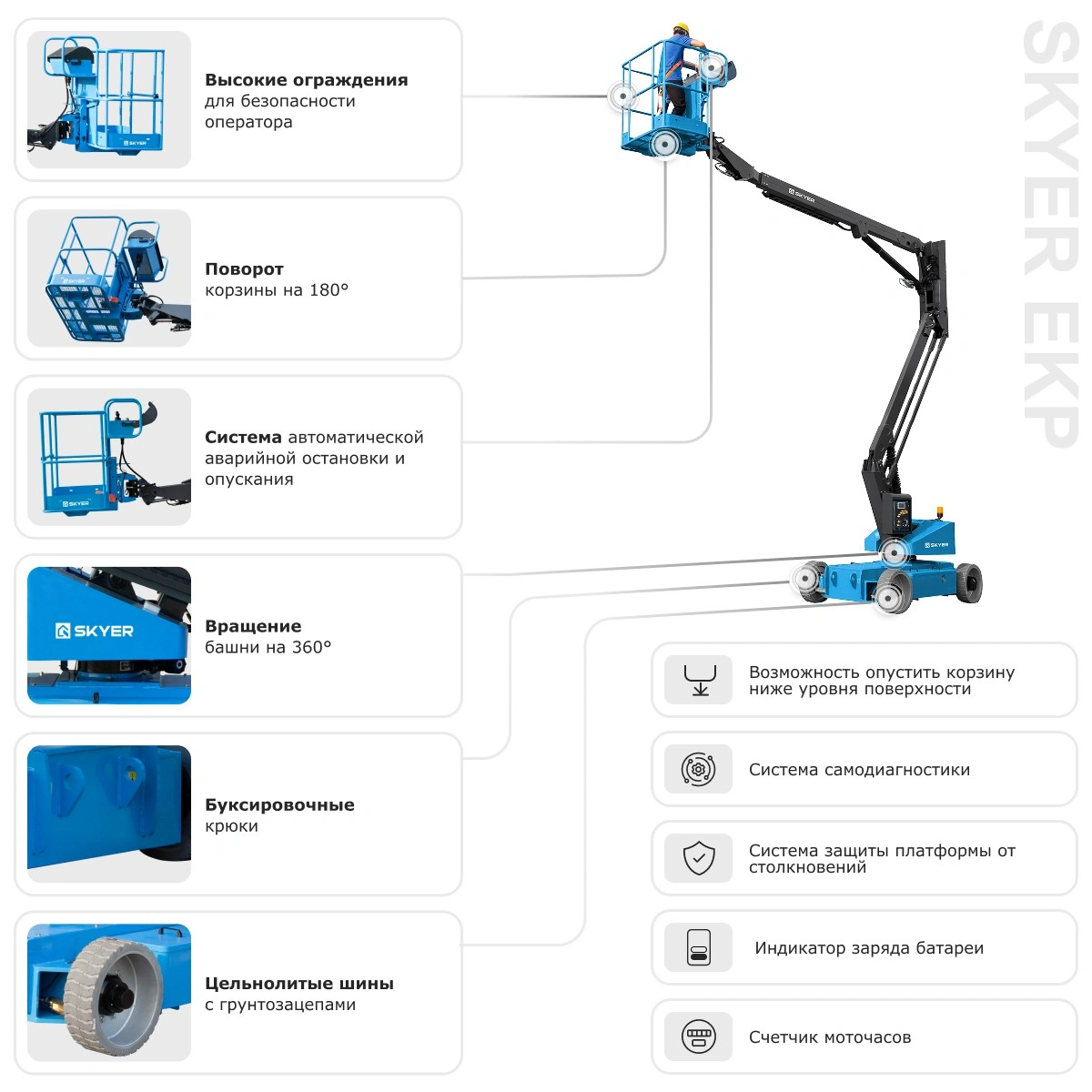 Коленчатый подъемник SKYER EKP1220 — дотянется везде!
