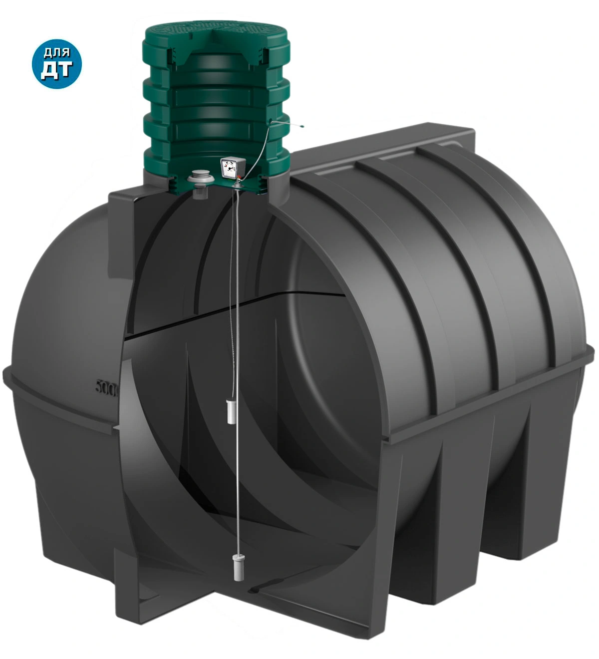 Накопительная ёмкость DT объёмом 1000 литров предназначена для подземного хранения дизельного топлива с возможностью дальнейшей выдачи. Все элементы конструкции, контактирующие с топливом, выполнены из химически стойкого полиэтилена, не подверженного коррозии и агрессивным веществам. Ёмкость поставляется в комплекте с базовой системой подачи топлива.