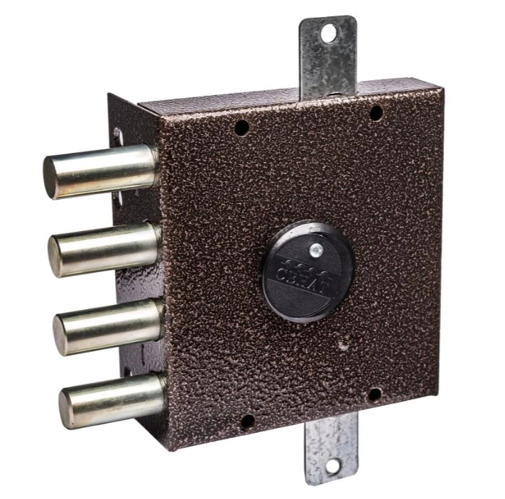 Дополнительная комплектация включает плоскую или коробчатую запорную планку, установку каленой вращающейся шайбы на крышке замка, дополнительно предохраняющей от высверливания стойки ригеля и вращающиеся стержни ригеля.
