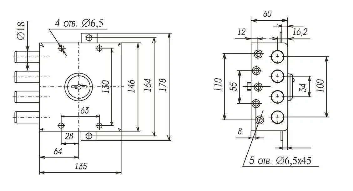ЗНСТ-1 отличается от ЗНС-1 наличием двух вертикальных приводов, предназначенных для крепления тяг, при помощи которых дверь запирается в трех направлениях.