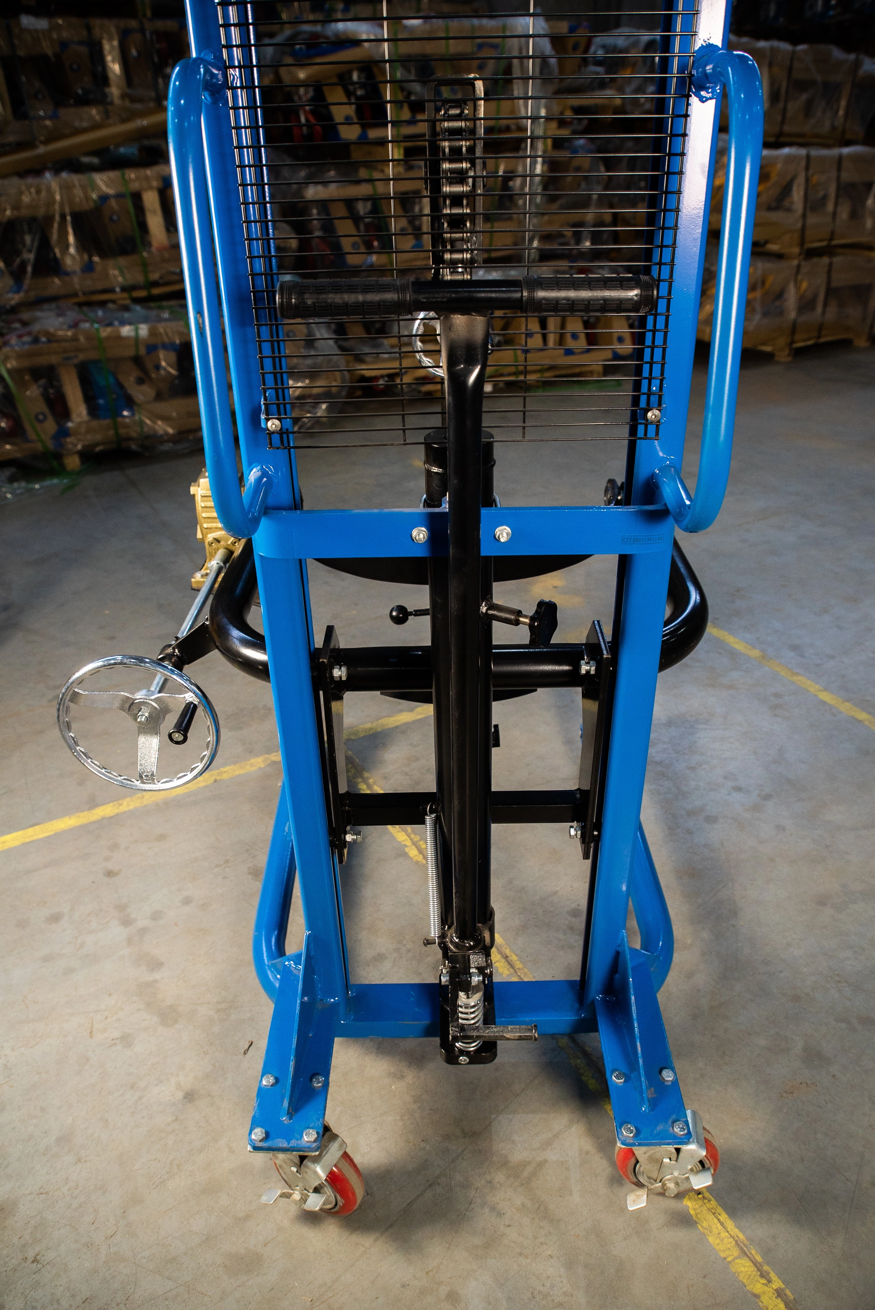 Штабелер бочкокантователь TOR СОТ 0.35Т/2.5М— Специальный штабелер, сделанный для поднятия, перевозки и кантования (наклона, переворота) бочек. Модель оснащена надежным держателем бочек и червячным ручным редуктором для переворота бочки. Штабелер простой в обращении и не прихотлив в обслуживании. Максимальный вес бочки может быть 350 кг, что в принципе покрывает практически все материалы, тарированные в бочки. К минусам данной модели можно отнести лишь то, что бочку брать и ставить мы можем только с ровных площадок: пол, полки. С помощью этого штабелера не получиться работать с бочками с паллет. Высота подъема в 2.5 метра позволяет ставить бочки в 2 яруса.Складская техника производства TOR – это соединение современных разработок и решений, проверенных временем. Так компания добивается качества и простоты использования своего оборудования. В модельном ряду найдутся как экономичные модели, так и модели для интенсивных нагрузок. Штабелер бочкокантователь TOR СОТ 0.35Т/2.5М— Специальный штабелер, сделанный для поднятия, перевозки и кантования (наклона, переворота) бочек. Модель оснащена надежным держателем бочек и червячным ручным редуктором для переворота бочки. Штабелер простой в обращении и не прихотлив в обслуживании. Максимальный вес бочки может быть 350 кг, что в принципе покрывает практически все материалы, тарированные в бочки. К минусам данной модели можно отнести лишь то, что бочку брать и ставить мы можем только с ровных площадок: пол, полки. С помощью этого штабелера не получиться работать с бочками с паллет. Высота подъема в 2.5 метра позволяет ставить бочки в 2 яруса. Особенности штабелера: •Специальное исполнение для кантования бочек •Защитная решетка для защиты оператора от цепей и груза •Надежный гидравлический механизм подъема и кантования. Подробные технические характеристики штабелера можно посмотреть ниже в разделе технические характеристики. При выборе штабелера обращайте внимание на его основные эксплуатационные характеристики, которые важны для вас. Если нужна консультация специалиста, воспользуйтесь удобным для вас способом связи для получения исчерпывающей информации по выбору штабелера.