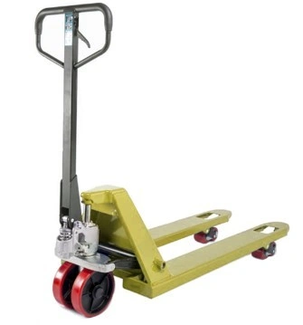 Тележка гидравлическая коротковильная TOR AC(J) с длиной вил 800мм и грузоподъемностью 2500кг применяется для погрузочно-разгрузочных работ и перевозки паллетированных грузов в условиях ограниченного пространства. Полиуретановые колеса хорошо поглощают вибрации и ударные нагрузки, не повреждают пол, чрезвычайно устойчивы к порезам и их разрастанию, долговечны в использовании. Могут использоваться в помещениях с грязными полами, не боятся осколков, воздействия масла, бензина и слабых кислот. Где используется? Рекомендуется к использованию на складах с узким межстеллажным пространством, для транспортировки грузов в лифтах, а также для работы внутри контейнера и кузова грузового транспорта. Преимущества TOR AC(J): - Компактный корпус и улучшенная маневренность. - Длина вил 800 мм позволяет перевозить стандартные паллеты. - Разборный литой гидроцилиндр, прочный и недорогой в обслуживании. - Поворотные колеса диаметром 180мм обеспечивают повышенную проходимость тележки. - Сдвоенные подвилочные ролики облегчают заезд на рампы. - Регулируемые тяги позволят быстро корректировать высоту вил. - Полимерная накладка на ручку для комфортной работы при низких температурах. - Полиуретановые колеса рассчитаны на длительное использование. - Прочное лакокрасочное покрытие устойчиво к сколам.